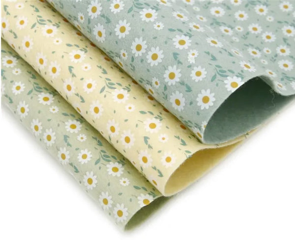100% Pure Wool Felt - Dasies Printed Felt - Non ravelling