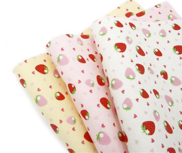 100% Pure Wool Felt - Strawberries & hearts - Printed Felt